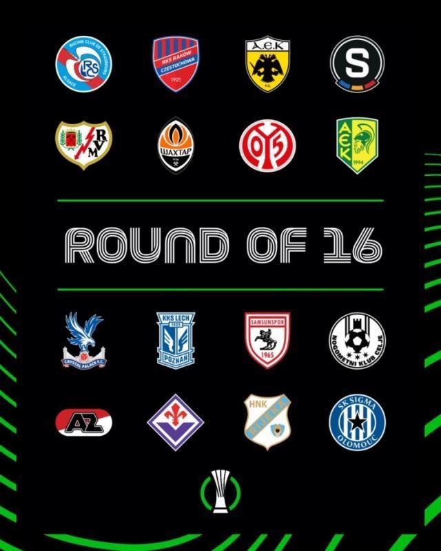 欧协联16强球队: