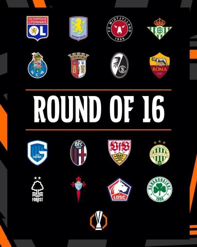 今晚抽签!欧联杯16强:维拉、罗马、贝蒂斯在列,五大联赛各2队